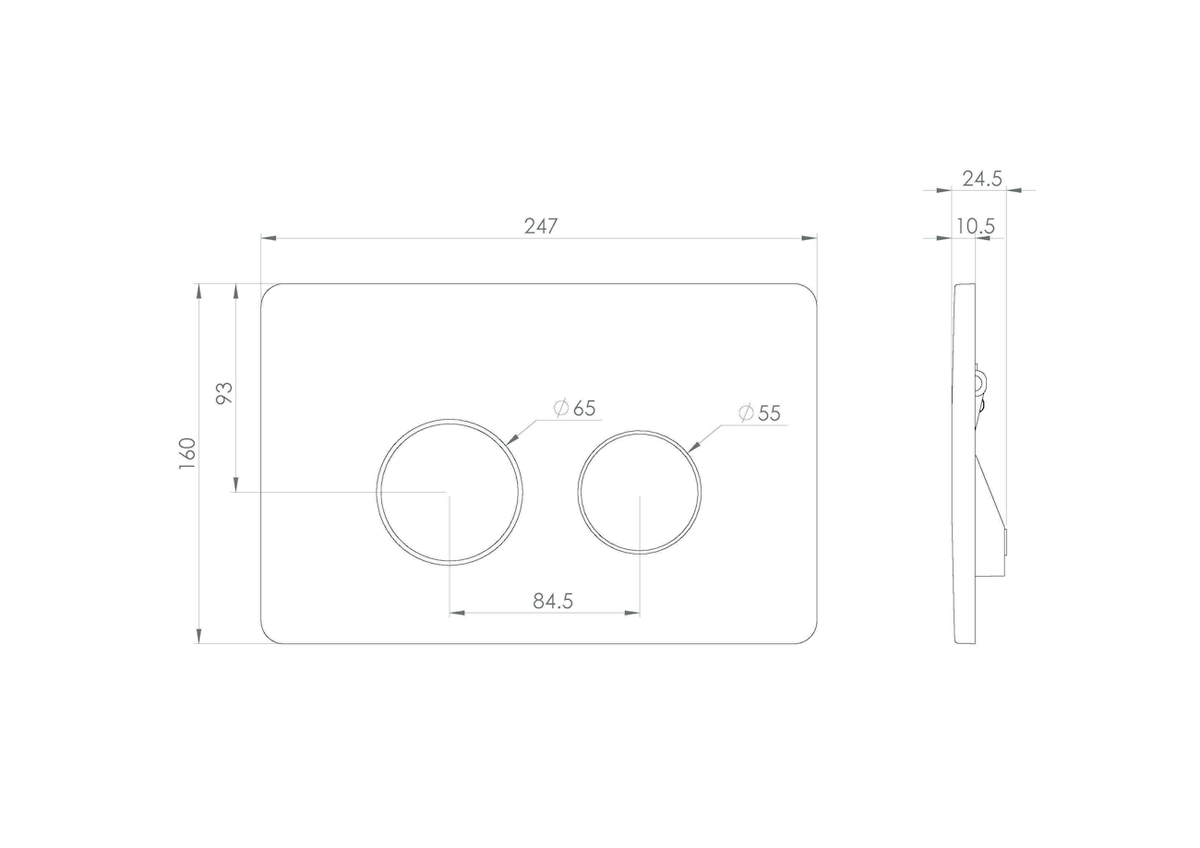 This FLUSHE 2.0 chrome dot flush plate is mechanical and features 2 round buttons: the smaller button operates a half flush, and the larger button operates a full flush.