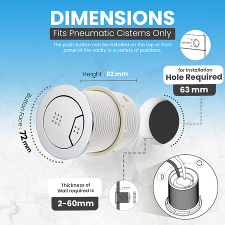 Toilet Flush Button Replacement for Cistern- Pneumatic Technology - 72mm Front