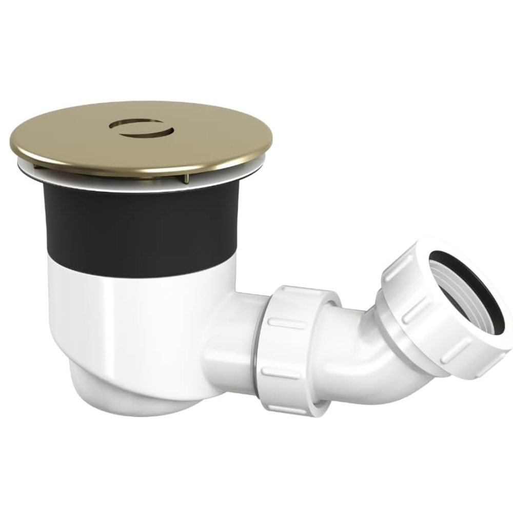 Top Fix Shower Tray Waste – 90mm Brushed Brass Shower Trap with Cover