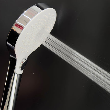 With 3 spray pattern. Fits all standard shower hoses – ½” BSP. Rub to clean spray jets. Press the button to switch between the spray patterns.