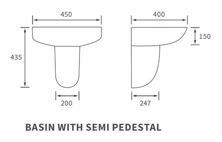 Tusany 450x400mm 1TH Basin & Semi Pedestal