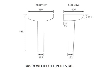 Tusany 550x400mm 1TH Basin & Full Pedestal